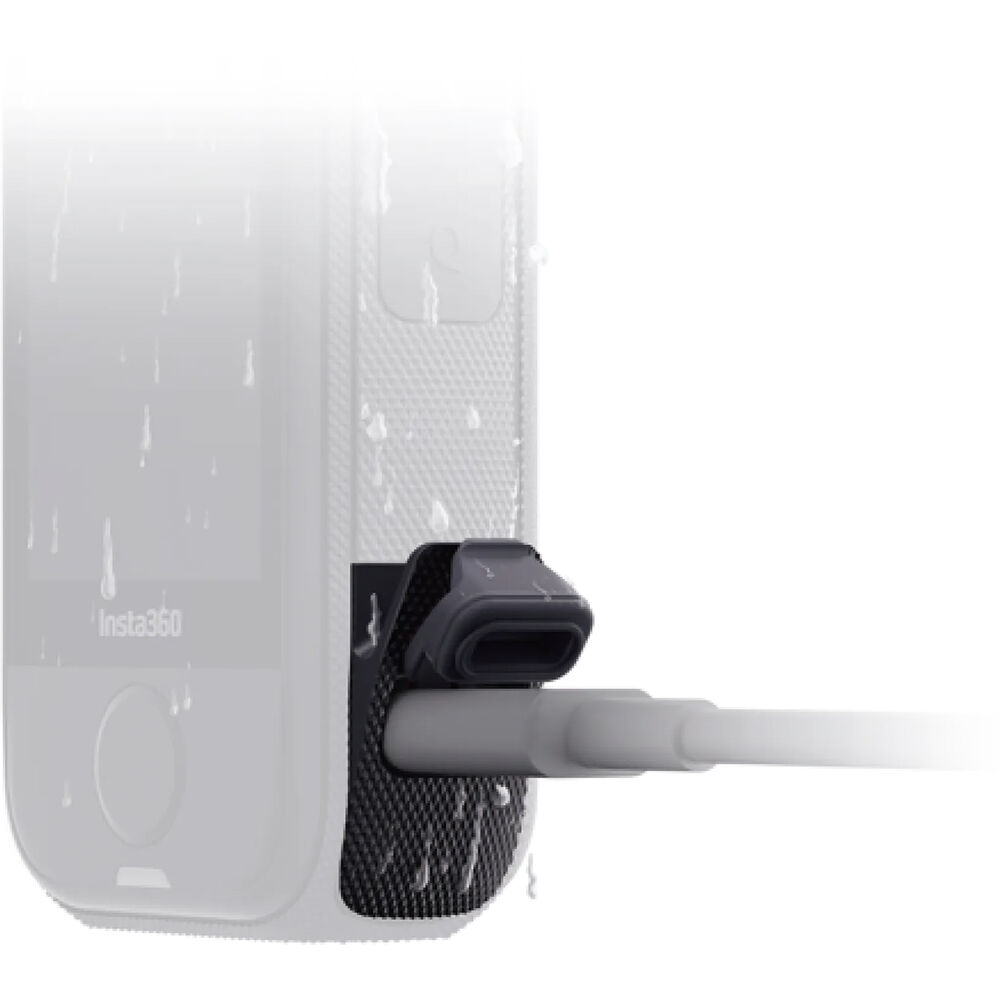 The All-Weather USB Charging Cover from Insta360 is rated IPX4 to protect your X4 Air camera’s USB port from unwanted moisture and dust. The plastic and silicone cover can function as a replacement component if your USB cover becomes damaged or misplaced. It is made from durable plastic and silicone, snaps right into the slot, and requires no tools for installation.