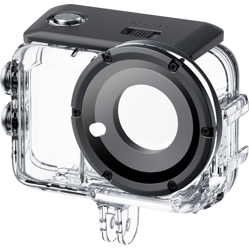 Take your GO Ultra underwater with the Insta360 Dive Case, which extends its waterproof depth from 33′ to 197′. The custom-fit clear case and hydrophobic glass lens maintain access to your controls while preserving your image quality. An integrated 2-prong bottom mount secures the case to selfie sticks or other mounts. A cold shoe mount on the side can accommodate LED lights.