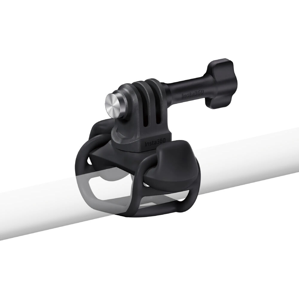 The Flexi Strap Mount from Insta360 allows you to secure your GO Ultra to handlebars, helmets, or other rounded surfaces for first- or third-person POV shooting. The mount includes two elastic straps, one short and one long, that wrap around your desired mounting surface. A soft silicone base prevents the mount from scratching up your bike or other equipment. Both a 3-prong mount and a quick release mount can secure your GO Ultra standalone camera or Action Pod in place. An integrated swivel joint allows you to rotate the camera 360° to achieve your desired shot.